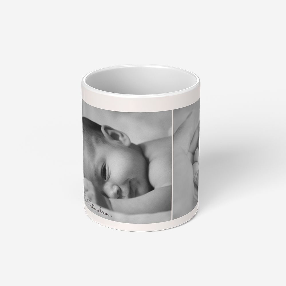 Caneca de cerâmica durável com impressão por sublimação térmica de alta definição. Pode ser usada no micro-ondas e recomenda-se lavagem à mão.